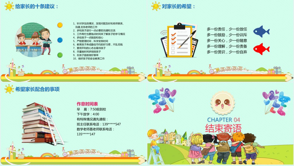 这套卡通风五年级开学家长会流程PPT模板属于内容型,已包含实质内容,可直接使用!