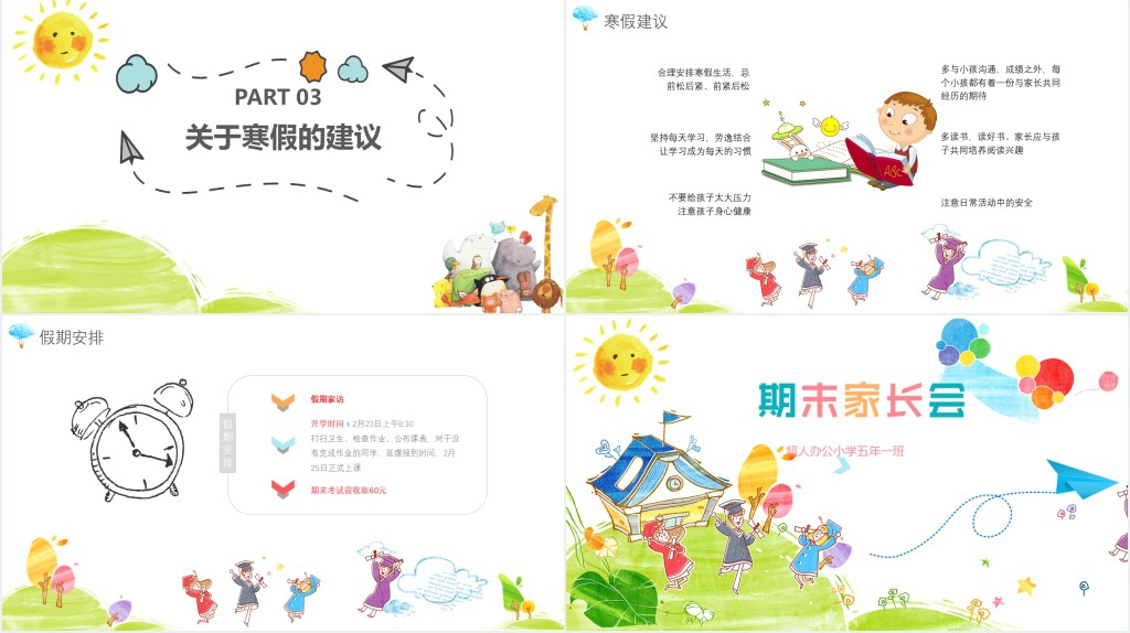 五年级语文期末家长会的主题是卡通风,让家长们可以更加深入地了解学生在语文学习方面的表现和进步。在这个家长会上,将通过生动有趣的方式呈现学生们在卡通风主题下的语文学习成果,让家长们能够更直观地感受到孩子们的语文学习成果和成长过程。通过这次家长会,希望能够激发家长们对孩子语文学习的关注和支持,共同助力学生在语文学习上取得更大的进步和成就。