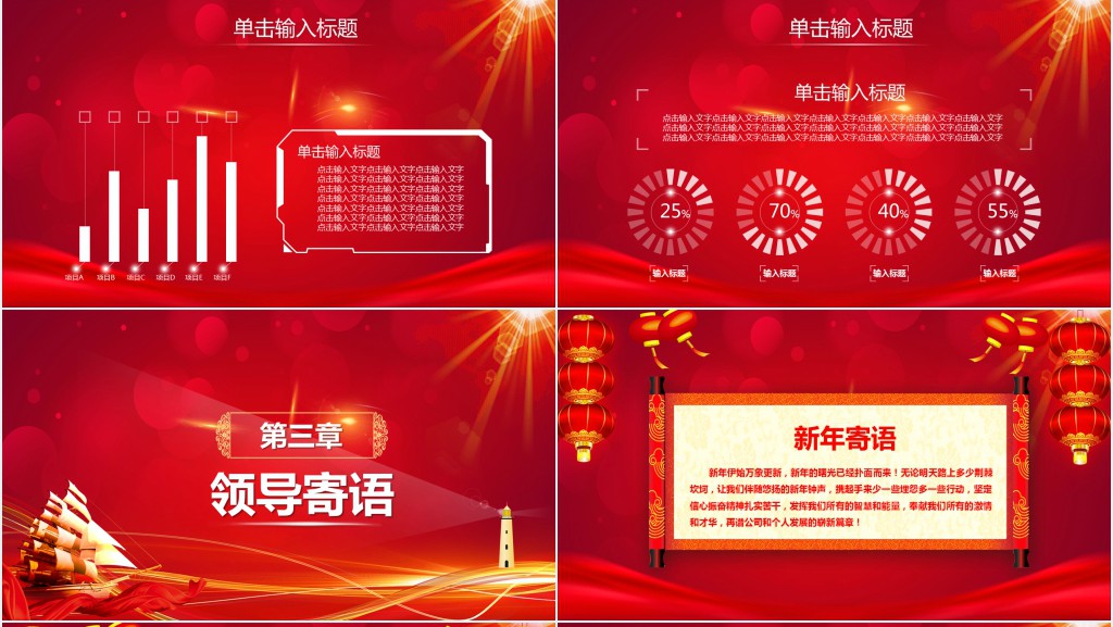 最后,以公司领导的致辞和对未来展望的页面作为总结,不仅表达了对过去一年工作的认可,也激励全体员工面向未来,共同努力,迎接更多的挑战和机遇。