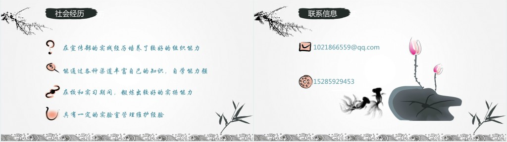 这套中国山水背景个人简历PPT模板属于内容型,已包含实质内容,可直接使用!