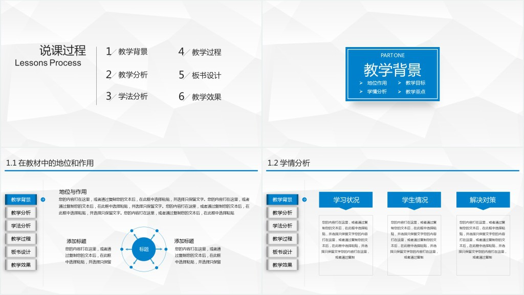 教师公开课说课的通用模板是为了规范教学内容的呈现,保证教学过程的有序进行。该模板包含了教学内容的结构安排、重点突出和重难点的讲解,使得教学内容更加系统化、科学化。同时,该模板还可以帮助教师在说课过程中更好地与学生进行互动,引导学生思考,激发学生的学习兴趣,提高教学效果。