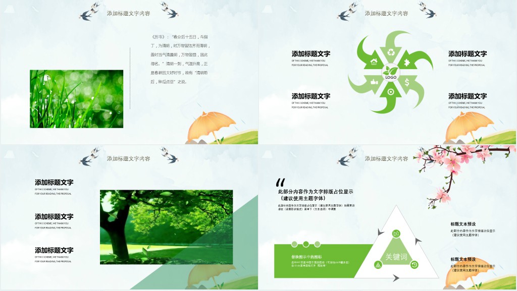春天桃花燕子清新淡雅唯美清明节PPT模板