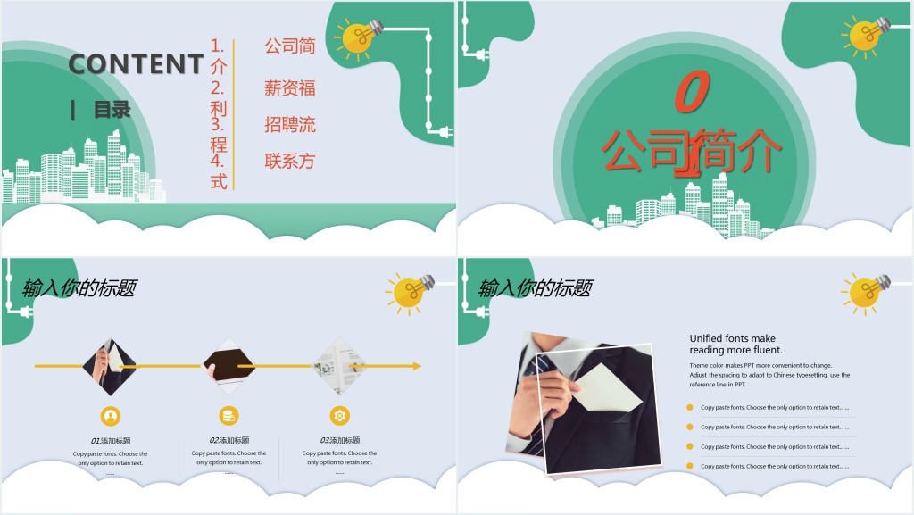 清爽绿色校园招聘会PPT模板