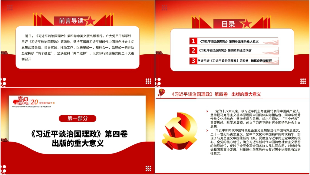 这套2022学习《习近平谈治国理政》第四卷PPT党课属于内容型,已包含实质内容,可直接使用!
