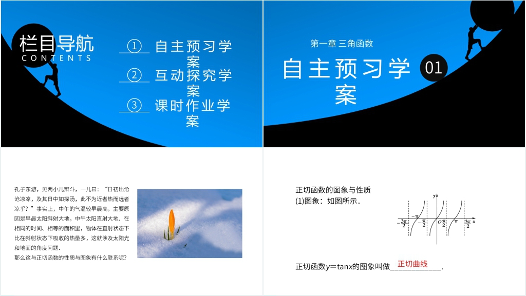1. 教学目标:通过本课的学习,让学生掌握正切函数的定义和基本性质,理解它们在坐标平面上的图象和变化规律。