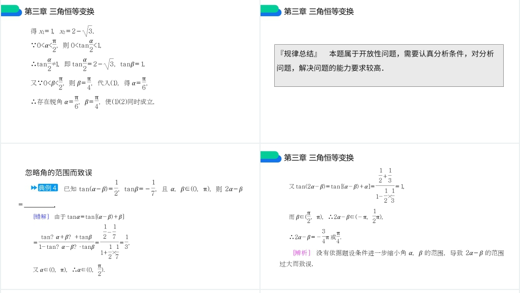 6. 总结归纳:对所学内容进行总结归纳,强调两角和与差的正弦、余弦和正切公式的推导过程和应用要点。