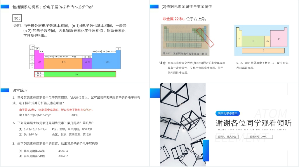 我代表XX学校高二年级化学教师团队,向大家汇报《原子结构与元素的性质》这节课的教学总结。本节课是高中化学选修三课程中的第一课,主要介绍了原子结构的基本概念和元素性质的相关内容。