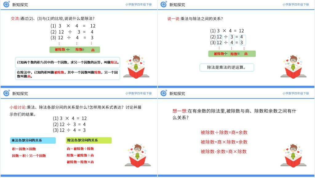 小学数学四年级下册《乘、除法的意义和各部分之间的关系》PPT课件