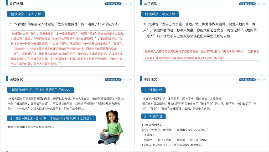 这套人教版九年级上册语文《敬业与乐业》教学教案PPT课件属于内容型,已包含实质内容,可直接使用!
