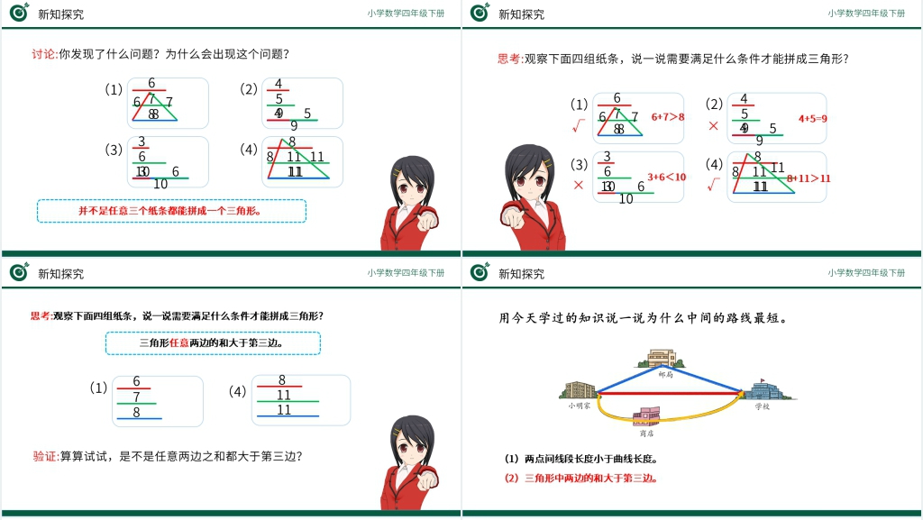 这套小学数学四年级下册《三角形边的关系》PPT课件属于内容型,已包含实质内容,可直接使用!