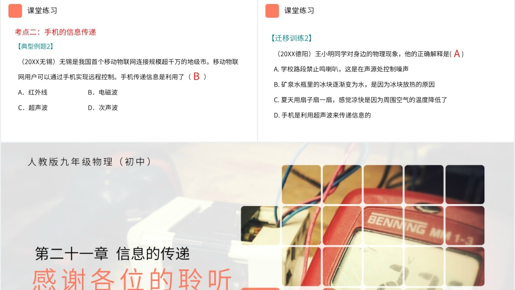 本课是人教版九年级初三物理第八章《信息技术》的第二节,主要介绍了广播电视和移动通信的基本原理和应用。本课的教学目标是: