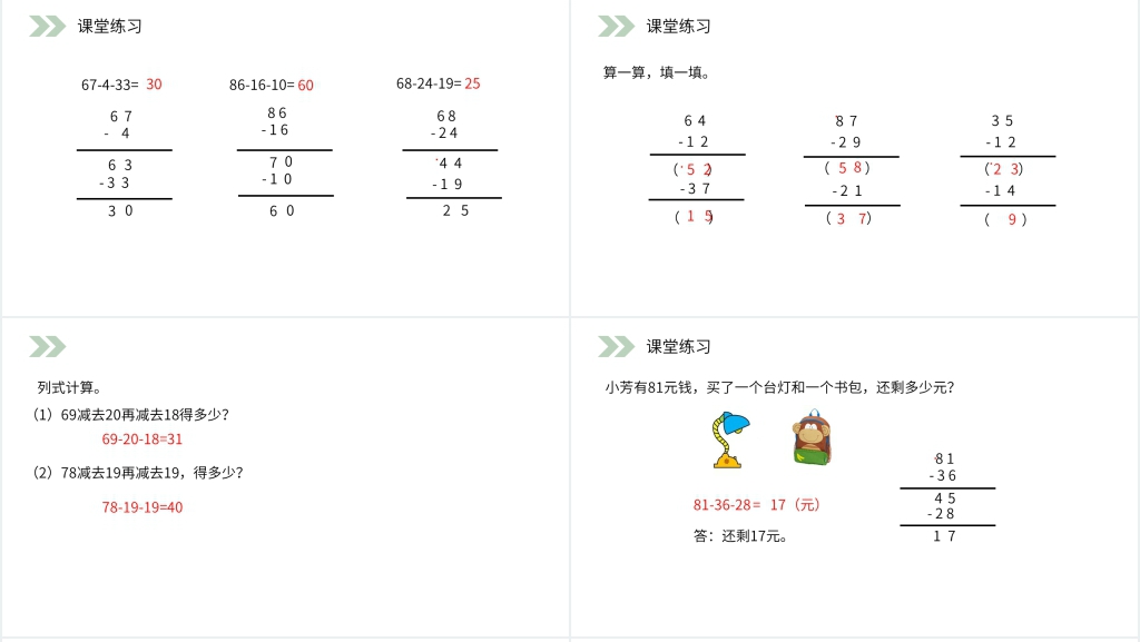 这套人教版小学数学二年级上册《连减》PPT课件属于内容型,已包含实质内容,可直接使用!