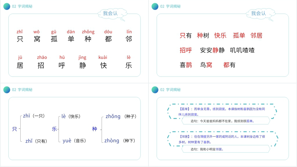 这套小学语文一年级下册《树和喜鹊》课文PPT课件属于内容型,已包含实质内容,可直接使用!