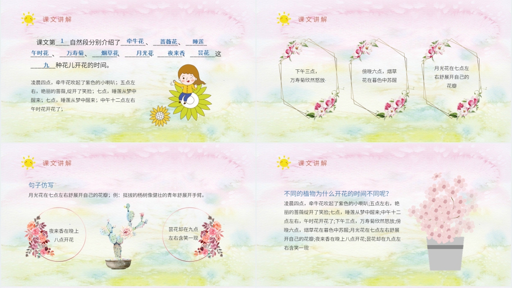 这套人教部编版小学语文三年级上册《花钟》课文PPT课件属于内容型,已包含实质内容,可直接使用!