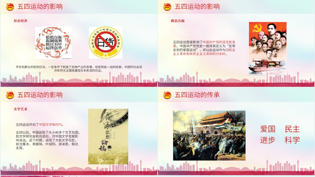我们今天的幸福生活,是五四运动的先驱们用鲜血和汗水换来的。他们用自己的行动,展示了生命韧如竹的精神,不畏强暴,不屈不挠,为国为民,为理想而奋斗。他们用自己的智慧,开启了新文化的大门,推动了科学、民主、进步的思潮,为中华文明注入了新的活力。他们用自己的情感,唤起了民族的自信和自尊,激发了爱国、爱民、爱社会的热情,为中华民族凝聚了新的力量。