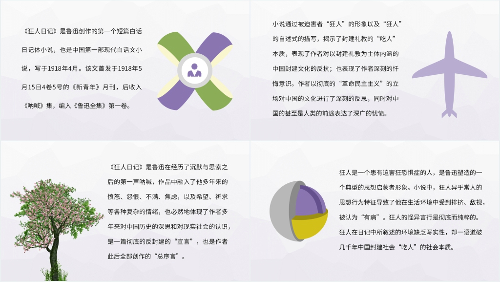 这套狂人日记读书交流会PPT模板属于内容型,已包含实质内容,可直接使用!