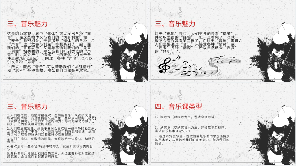 - 教师和学生一起分析课文中的关键词和表达方式,帮助学生更好地理解音乐的特点和功能。