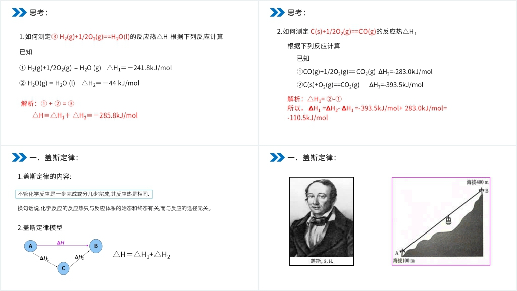 - 我们向学生介绍了计算化学反应热的方法和步骤。