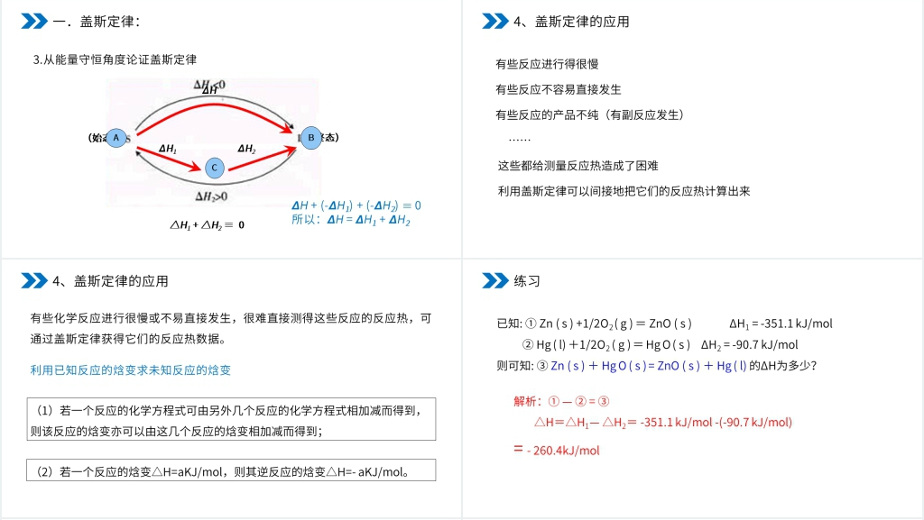 在教授《化学反应热的计算》这个课文时,我们主要围绕以下几个方面展开教学:
