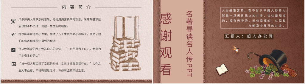 这套名著导读名人传PPT模板属于内容型,已包含实质内容,可直接使用!