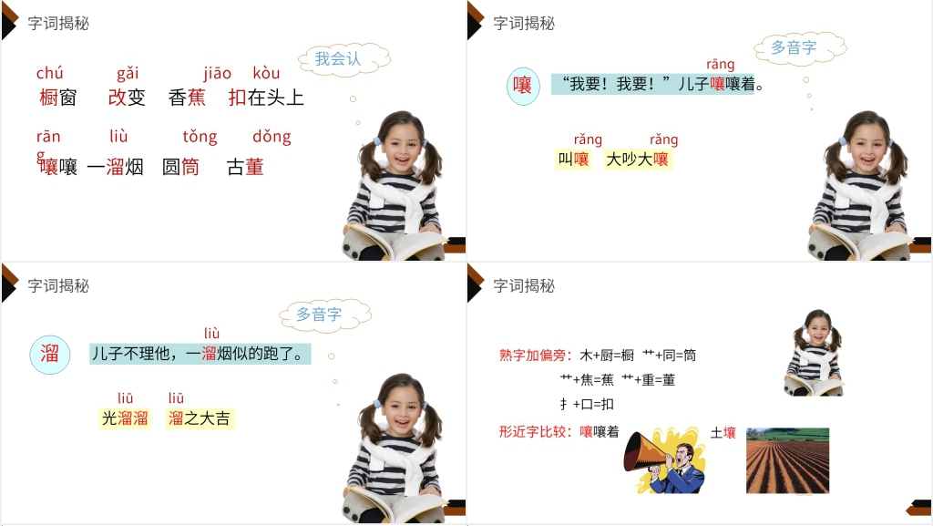 2. 针对生字词的讲解,可以采用多种方式,如图片、实物或举例等,增强学生的理解和记忆。