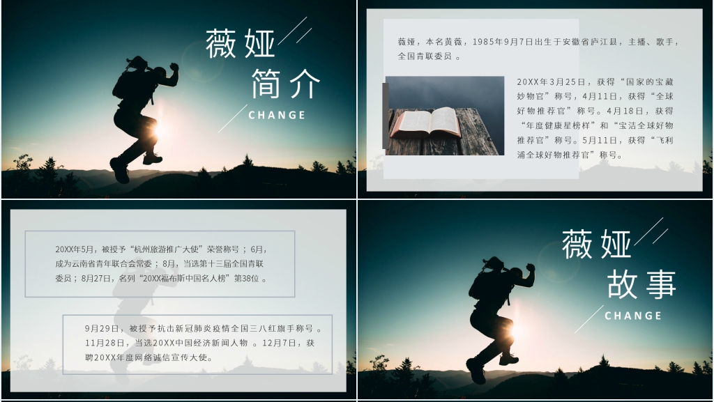 这套薇娅人生是用来改变的书简介PPT模板属于内容型,已包含实质内容,可直接使用!