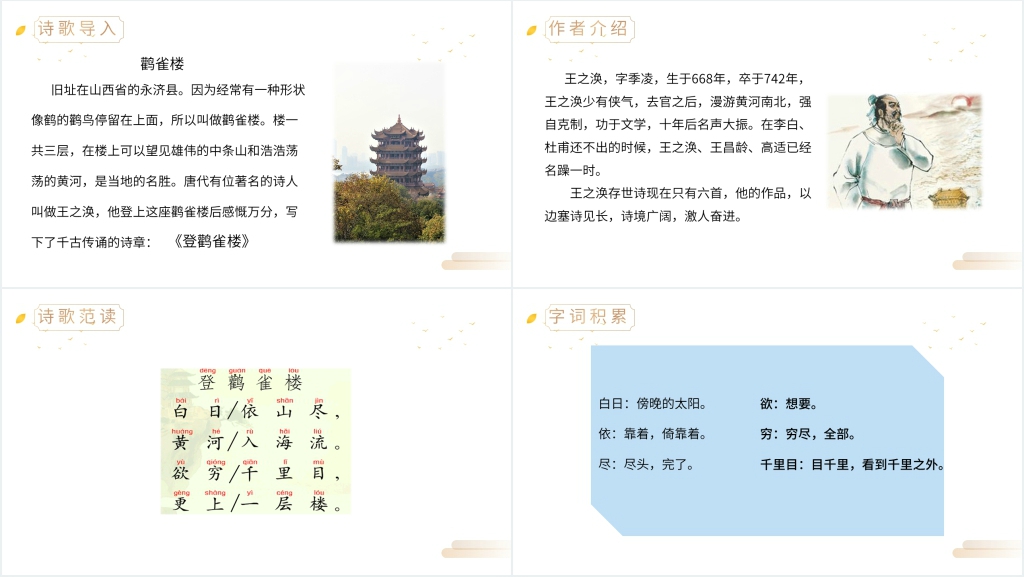 人教版二年级语文上册《登鹳雀楼》教案PPT课件