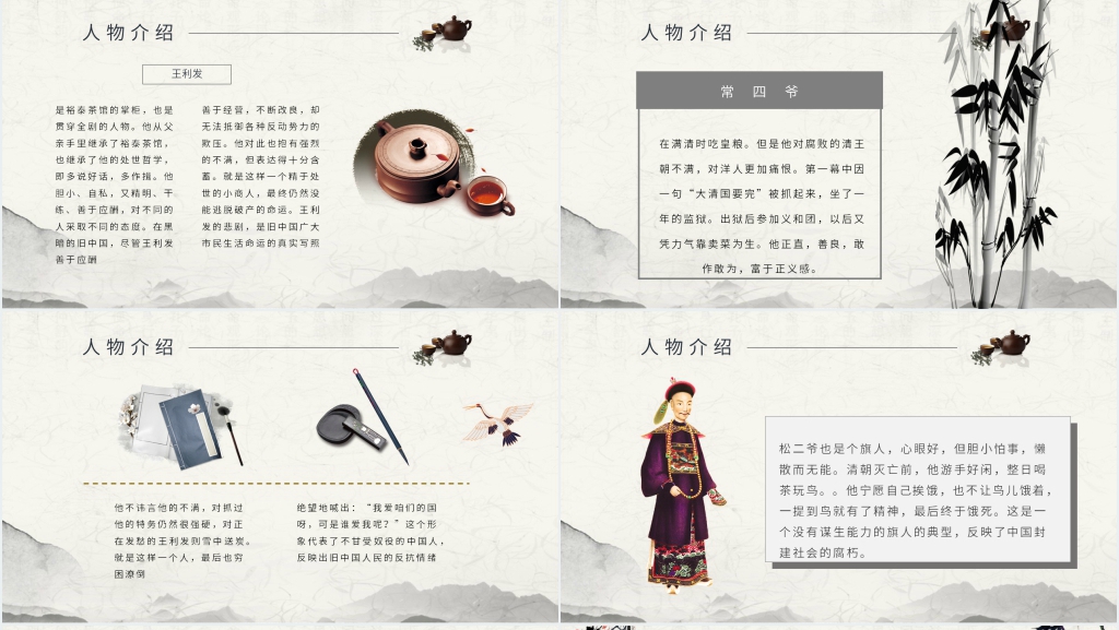 这套老舍茶馆高中PPT模板属于内容型,已包含实质内容,可直接使用!