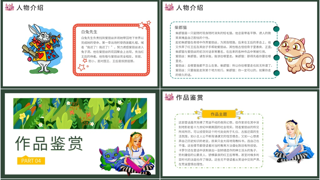 这套《爱丽丝漫游奇境记》导读PPT模板属于内容型,已包含实质内容,可直接使用!
