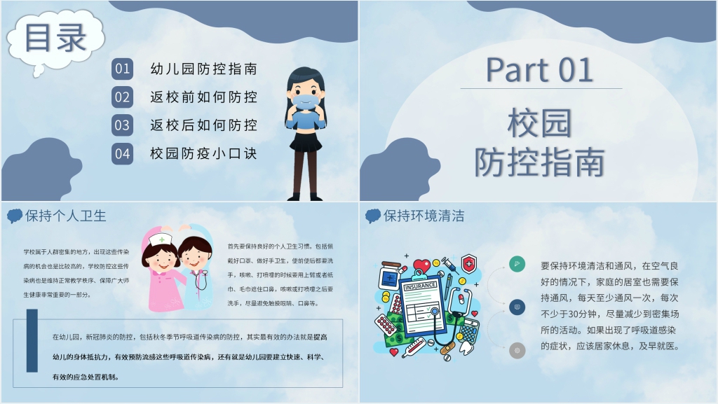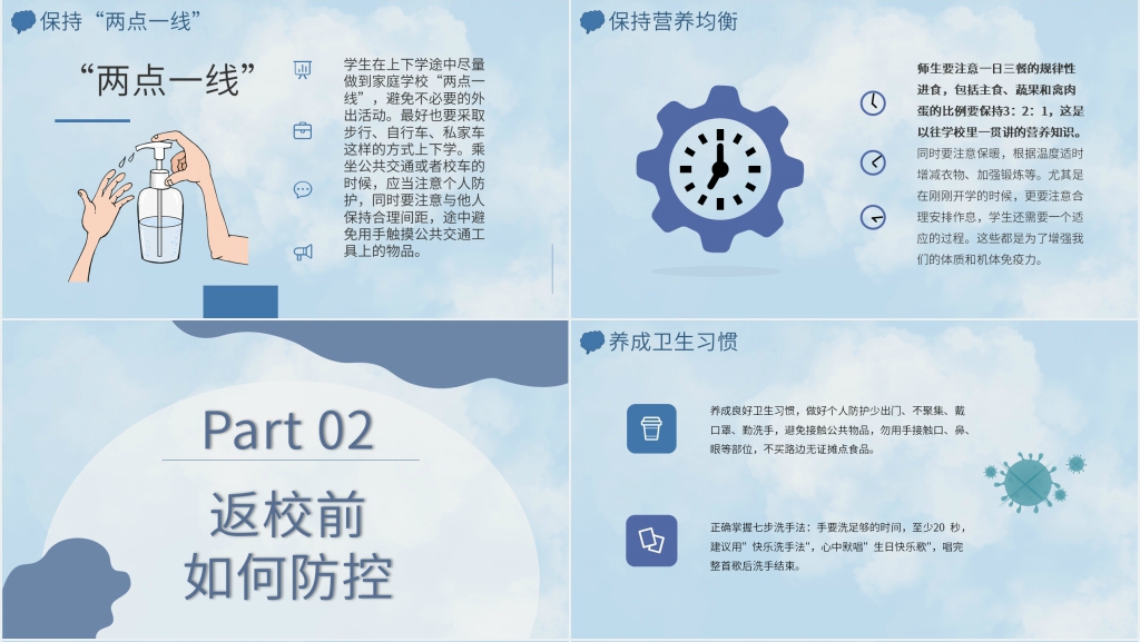 这套简洁返校疫情防控班会PPT课件属于内容型,已包含实质内容,可直接使用!