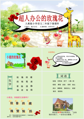 这套人教版二年级语文《小鹿的玫瑰花》课文PPT课件属于内容型,已包含实质内容,可直接使用!