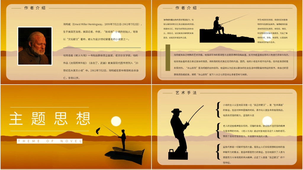 这套老人与海演讲PPT模板属于内容型,已包含实质内容,可直接使用!