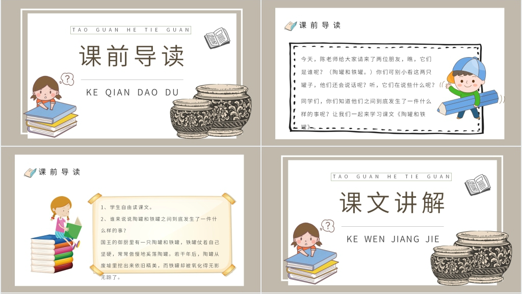 这套小学语文三年级上册《陶罐和铁罐》教学PPT课件属于内容型,已包含实质内容,可直接使用!