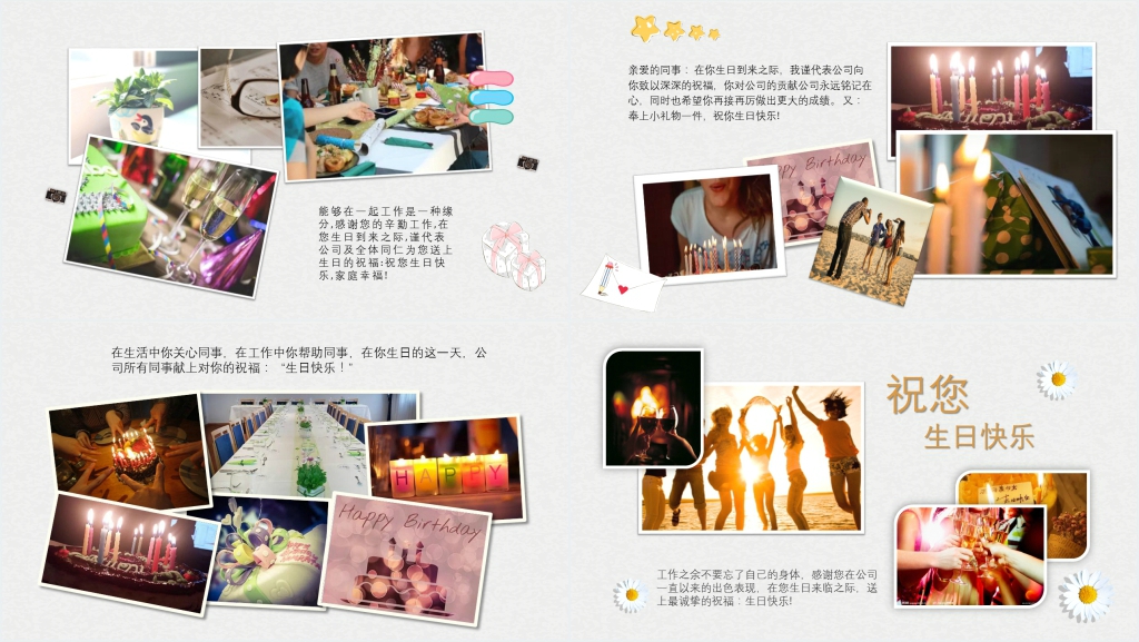 加强企业文化:生日相册也可以记录员工在企业中的重要时刻和共同的回忆,有助于塑造企业的独特文化和价值观,增强员工的凝聚力和向心力。
