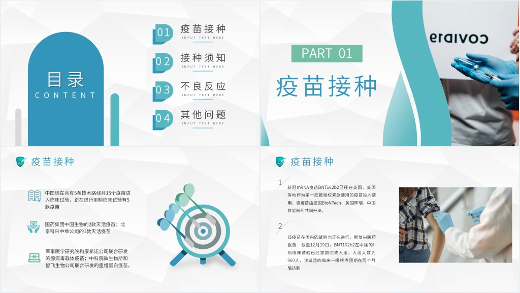 这套简约打新冠疫苗宣传PPT模板属于内容型,已包含实质内容,可直接使用!