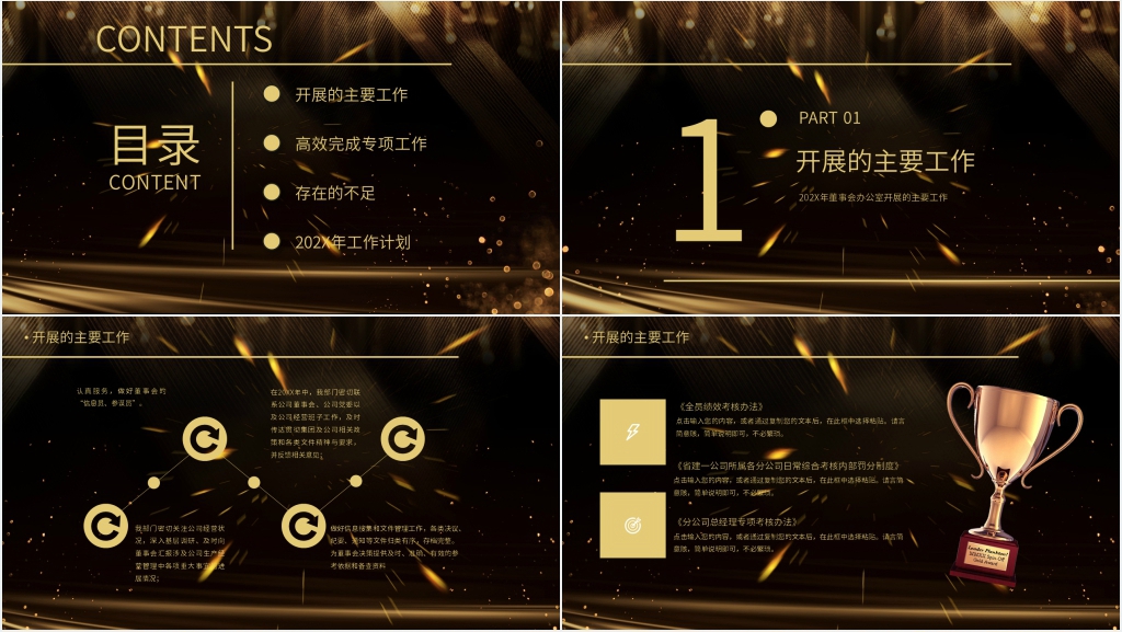这套董事会办公室年度述职PPT模板属于内容型,已包含实质内容,可直接使用!