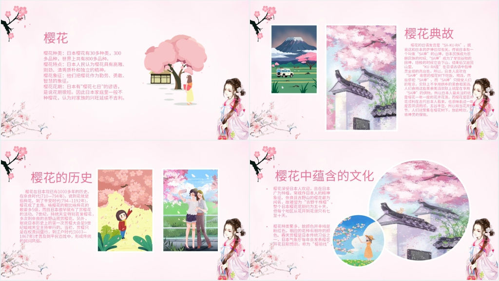 这套日本节日樱花节PPT模板属于内容型,已包含实质内容,可直接使用!