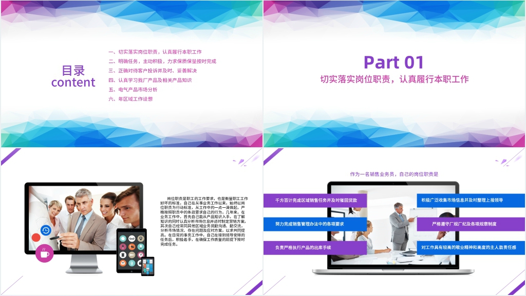 这套销售员工工作年度总结PPT范文属于内容型,已包含实质内容,可直接使用!
