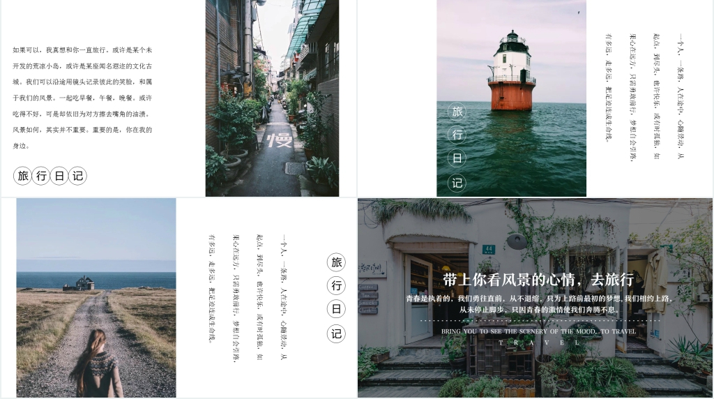 这套旅行的意义主题相册PPT模板属于内容型,已包含实质内容,可直接使用!