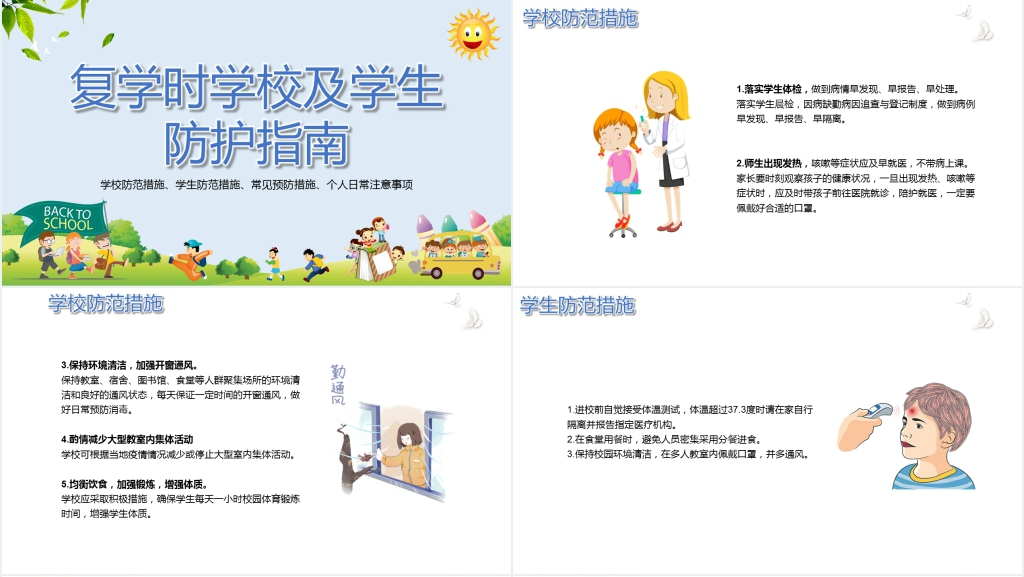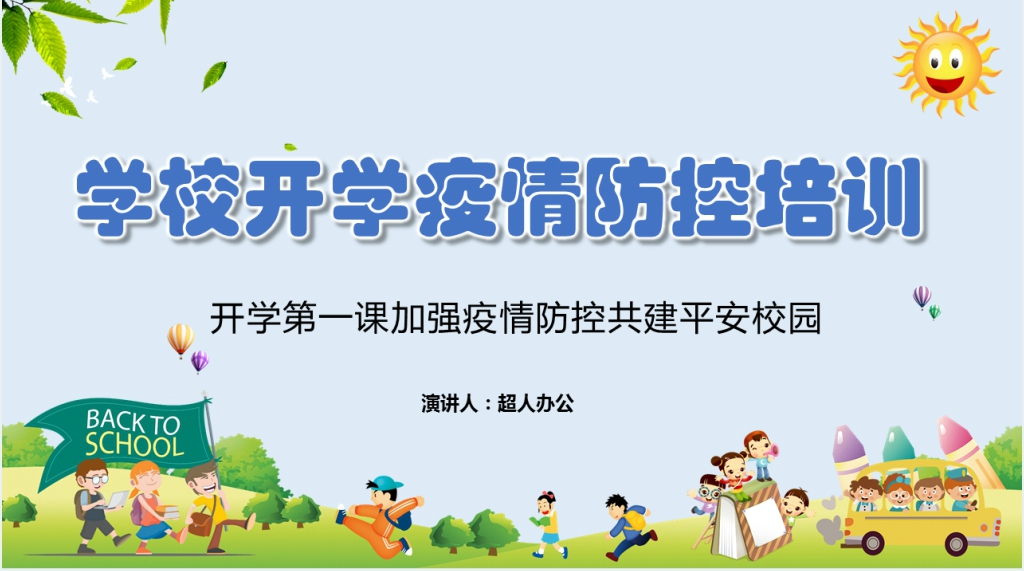 卡通风学校开学疫情防控培训PPT课件