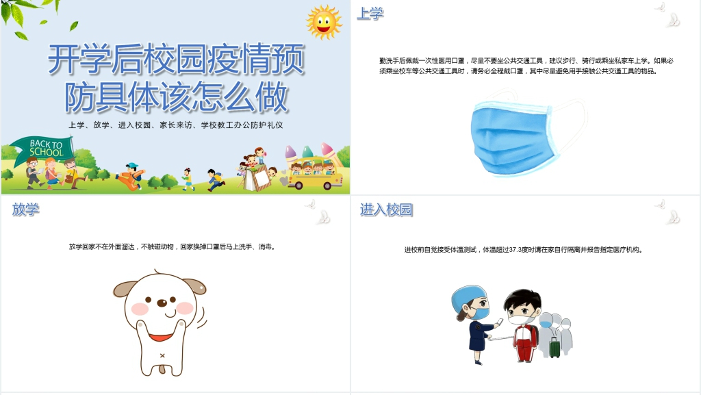 这套卡通风学校开学疫情防控培训PPT课件属于内容型,已包含实质内容,可直接使用!