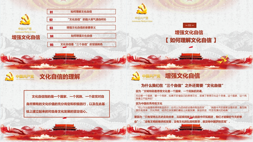 这套红色教育四个自信专题讲座PPT课件属于内容型,已包含实质内容,可直接使用!