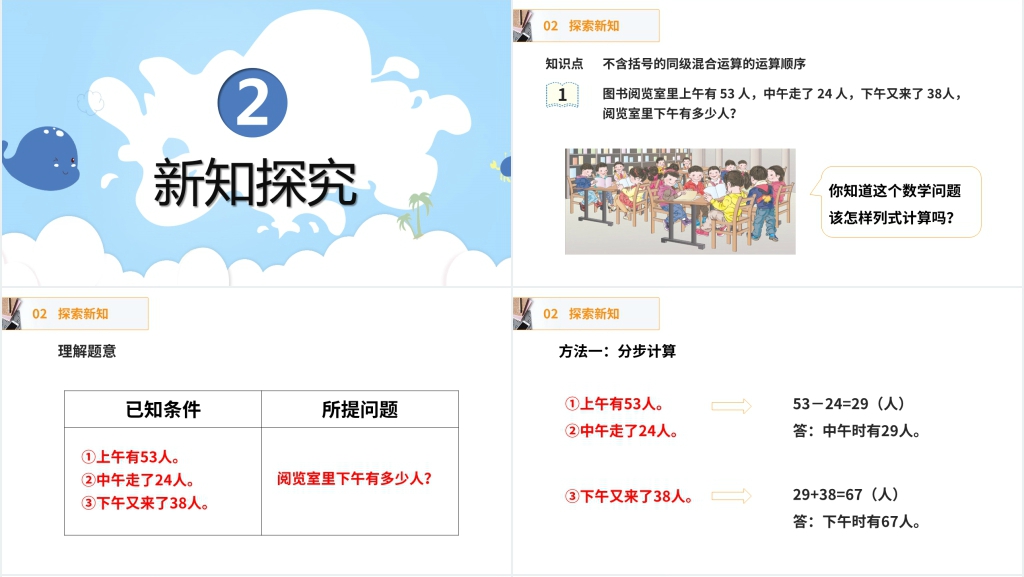 人教版数学二年级下册《没有括号的同级混合运算》(第5.1课时)教学PPT课件