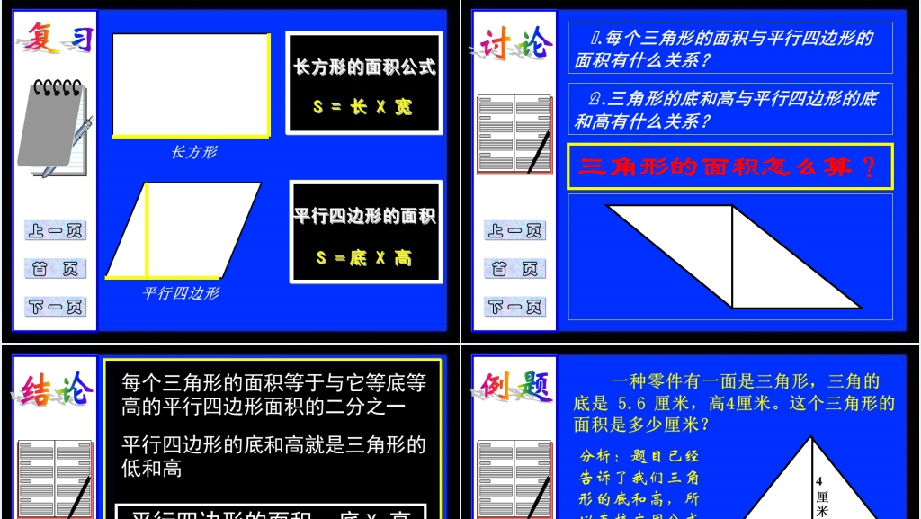 这套新课标人教版五年级数学上册《三角形面积计算》PPT课件属于内容型,已包含实质内容,可直接使用!