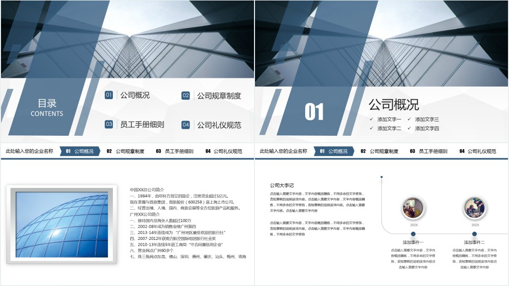 公司概况介绍:利用清晰的图表和简洁的文字,详细介绍公司的历史背景、发展愿景、核心价值观以及主要业务领域,帮助新成员快速了解公司的基本情况。