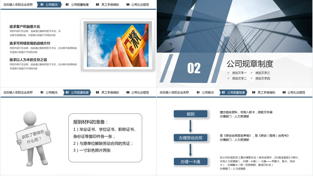整套材料以清晰的逻辑结构、丰富的视觉元素和实用的内容信息,共同构筑了一个有效的新员工培养体系,不仅能够帮助新成员快速了解和适应公司环境,也将极大地提升他们的工作效率和团队凝聚力。