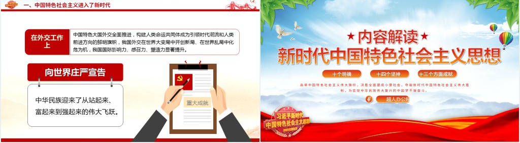 这套习近平新时代中国特色社会主义思想内容解读PPT党课属于内容型,已包含实质内容,可直接使用!