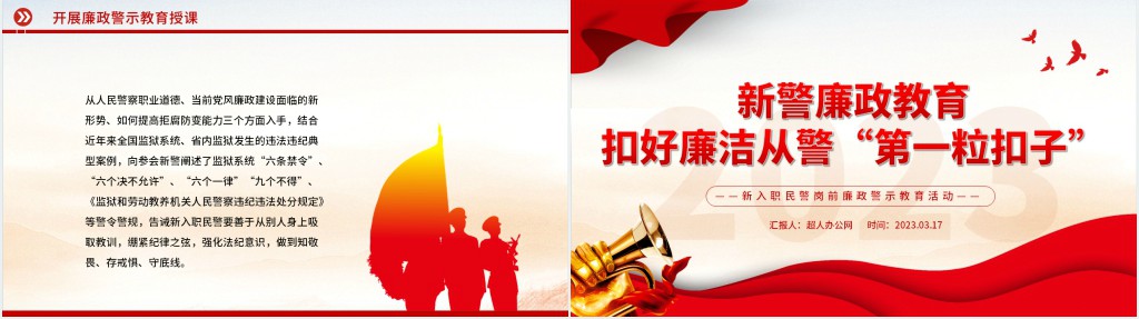 这套新警廉政教育扣好廉洁从警第一粒扣子PPT党课属于内容型,已包含实质内容,可直接使用!