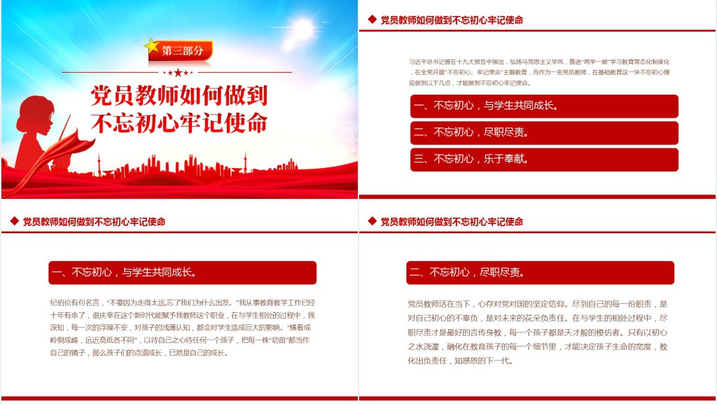这套不忘教育初心牢记育人使命主题教育PPT党课属于内容型,已包含实质内容,可直接使用!