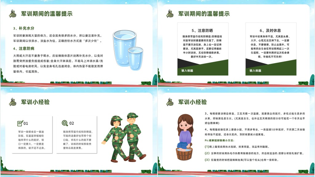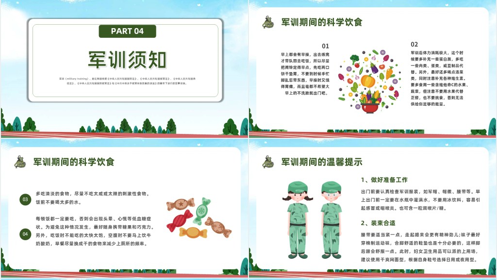 这套迷彩青春在此启程军训主题PPT课件属于内容型,已包含实质内容,可直接使用!